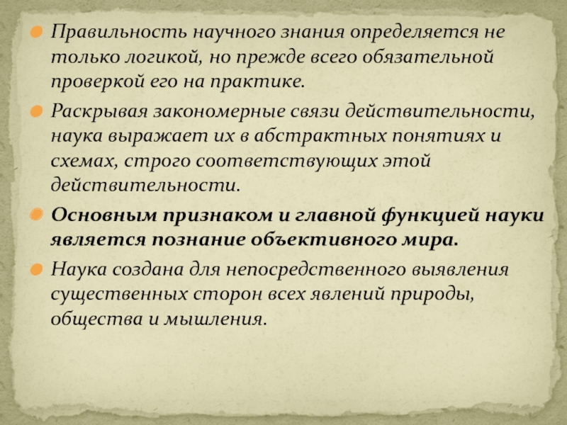 Слайд 7Правильность научного знания определяется не только логикой, но прежде всего