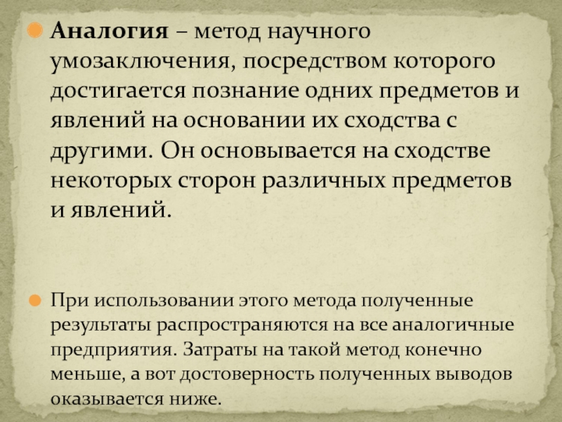 Слайд 22Аналогия – метод научного умозаключения, посредством которого достигается познание одних предметов