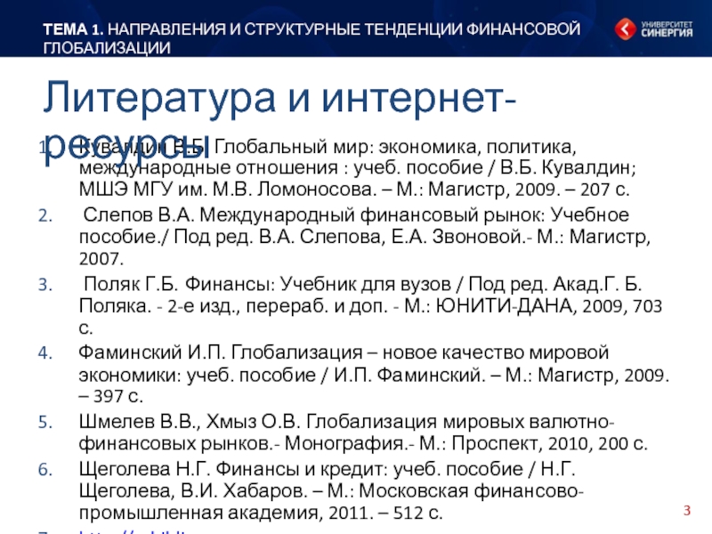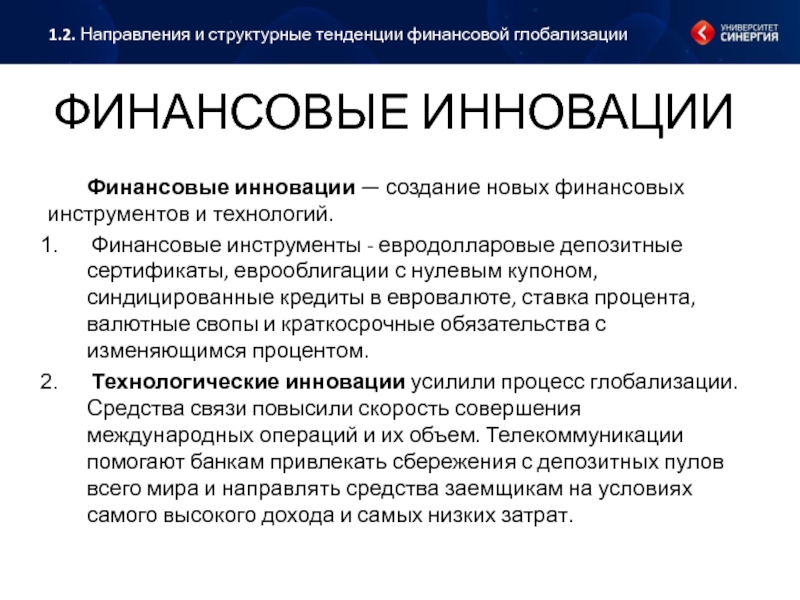 Тема 1. Направления и структурные тенденции финансовой глобализации