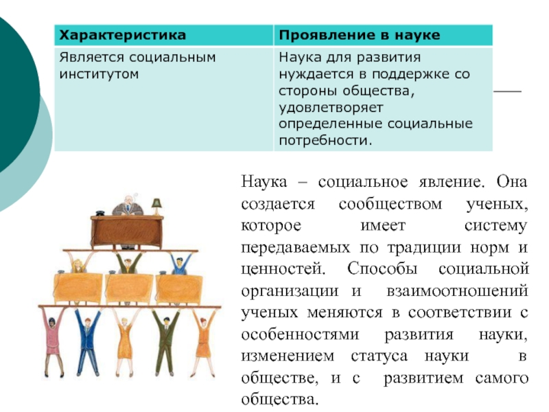 Слайд 7Наука – социальное явление. Она создается сообществом ученых, которое имеет
