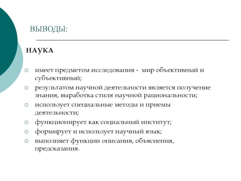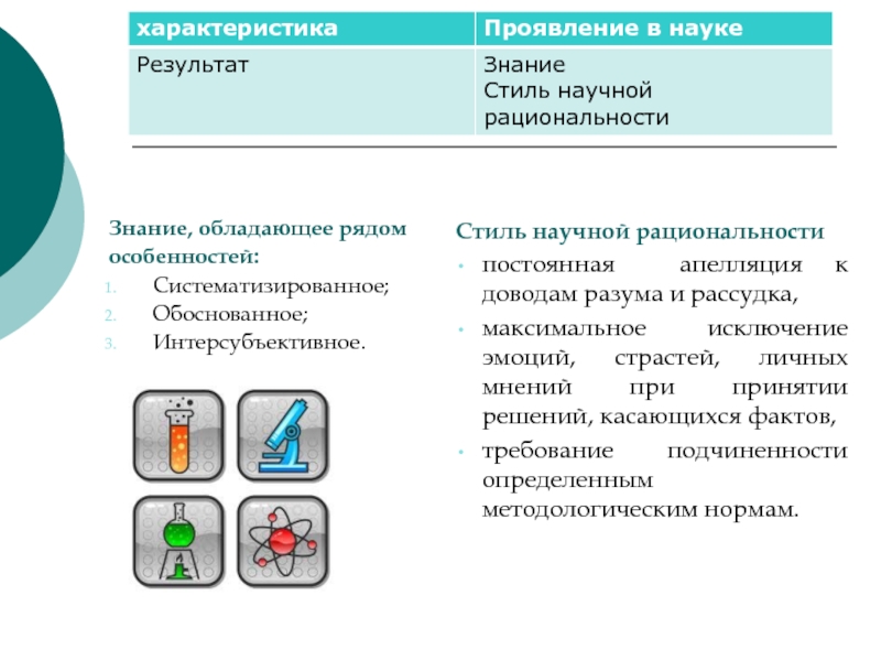 научной деятельности является получение знания, выработка стиля научной рациональности;