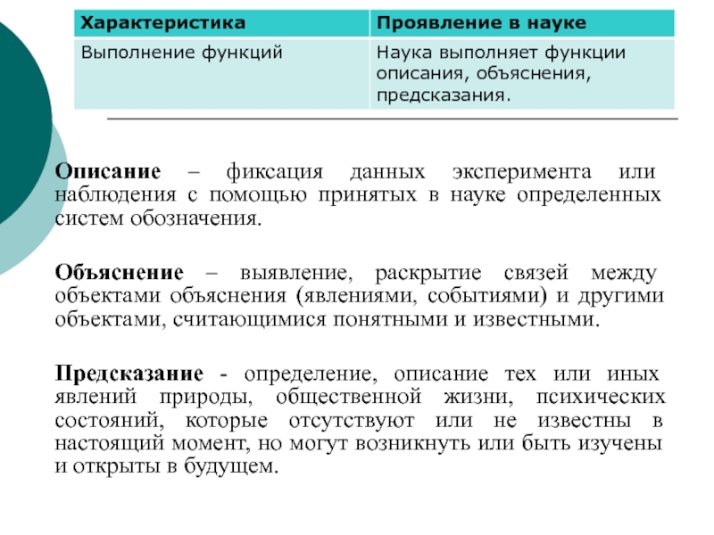 Описание – фиксация данных эксперимента или наблюдения с помощью принятых