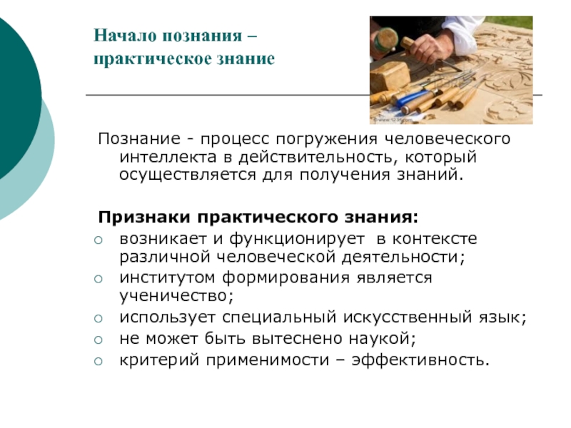 Познание - процесс погружения человеческого интеллекта в действительность, который