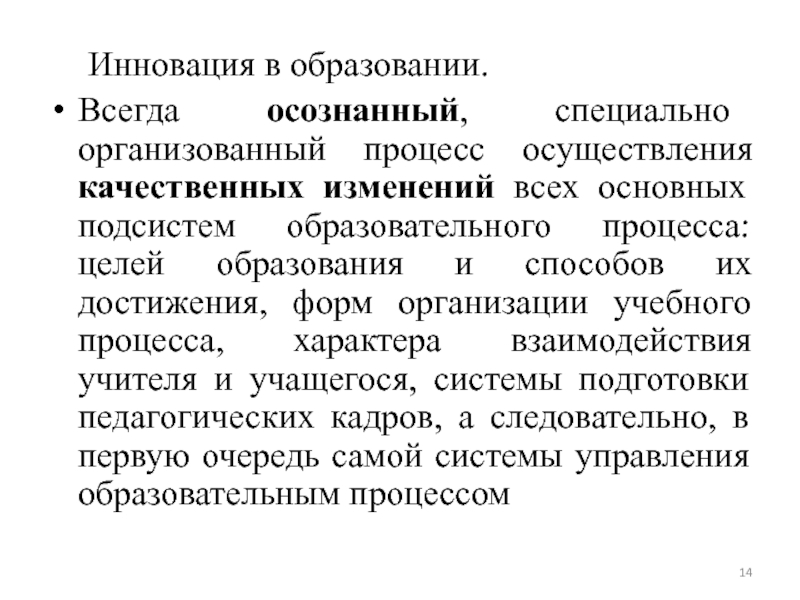 Всегда осознанный, специально организованный процесс осуществления качественных изменений