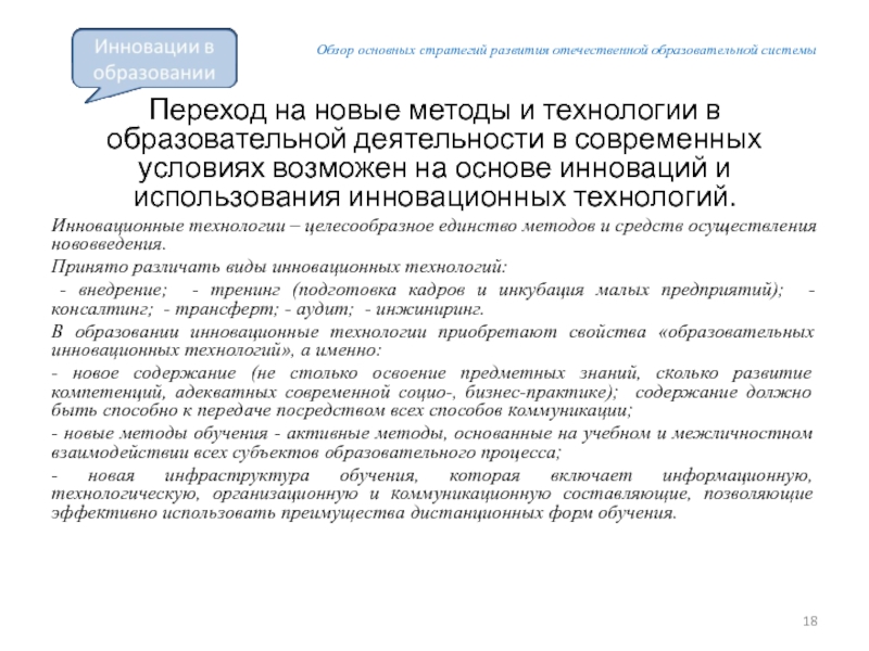 Слайд 18Обзор основных стратегий развития отечественной образовательной системы