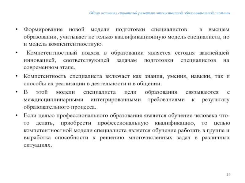 Слайд 19Обзор основных стратегий развития отечественной образовательной системы