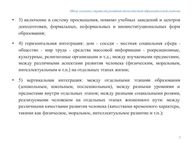 Слайд 5Обзор основных стратегий развития отечественной образовательной системы