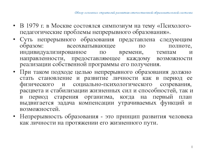 Слайд 8Обзор основных стратегий развития отечественной образовательной системы