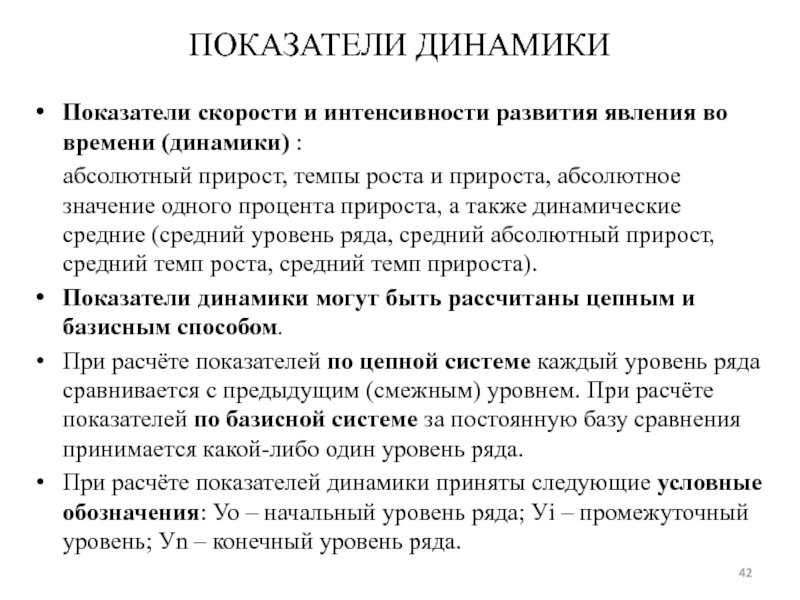 Слайд 42ПОКАЗАТЕЛИ ДИНАМИКИ