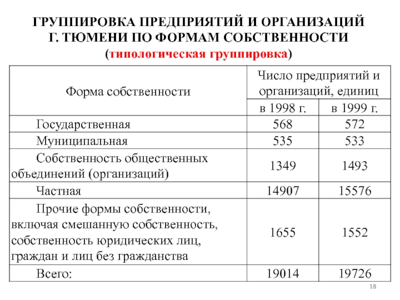 Г. ТЮМЕНИ ПО ФОРМАМ СОБСТВЕННОСТИ (типологическая
