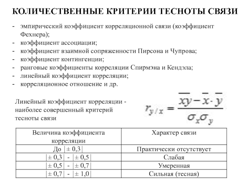 Слайд 56КОЛИЧЕСТВЕННЫЕ КРИТЕРИИ ТЕСНОТЫ СВЯЗИ