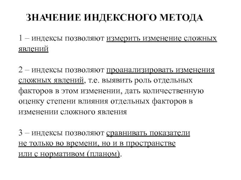 2 – индексы позволяют проанализировать изменения сложных явлений, т.е. выявить