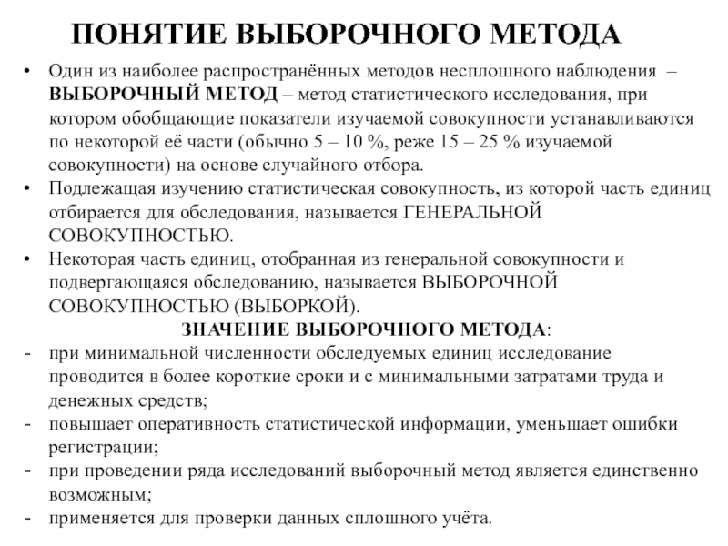 Слайд 49ПОНЯТИЕ ВЫБОРОЧНОГО МЕТОДА