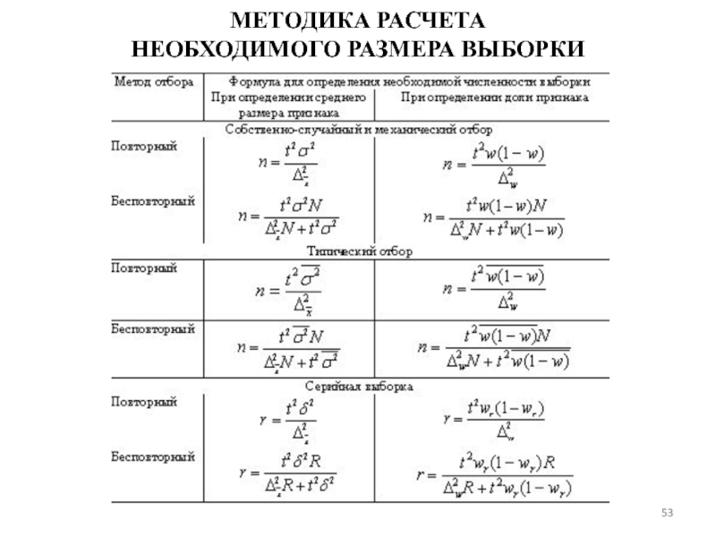 Слайд 52МЕТОДИКА РАСЧЕТА СРЕДНЕЙ ОШИБКИ ВЫБОРКИ
