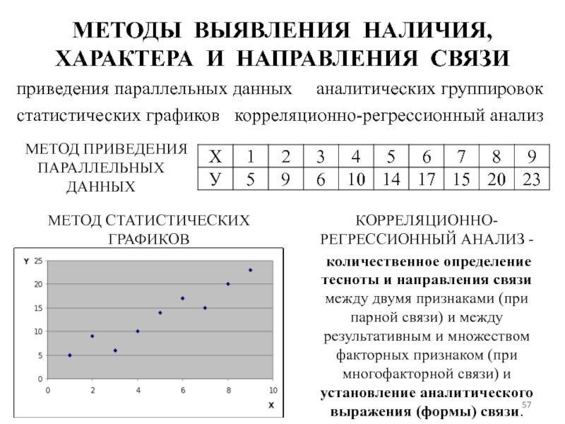 Слайд 57МЕТОДЫ ВЫЯВЛЕНИЯ НАЛИЧИЯ, ХАРАКТЕРА И НАПРАВЛЕНИЯ СВЯЗИ