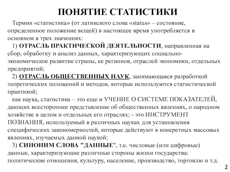 Слайд 2ПОНЯТИЕ СТАТИСТИКИ