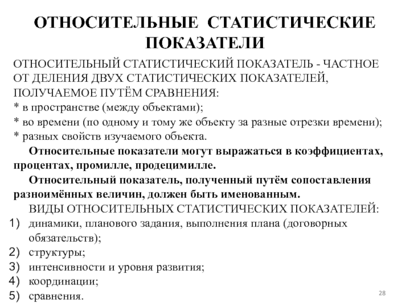 Слайд 28ОТНОСИТЕЛЬНЫЕ СТАТИСТИЧЕСКИЕ ПОКАЗАТЕЛИ