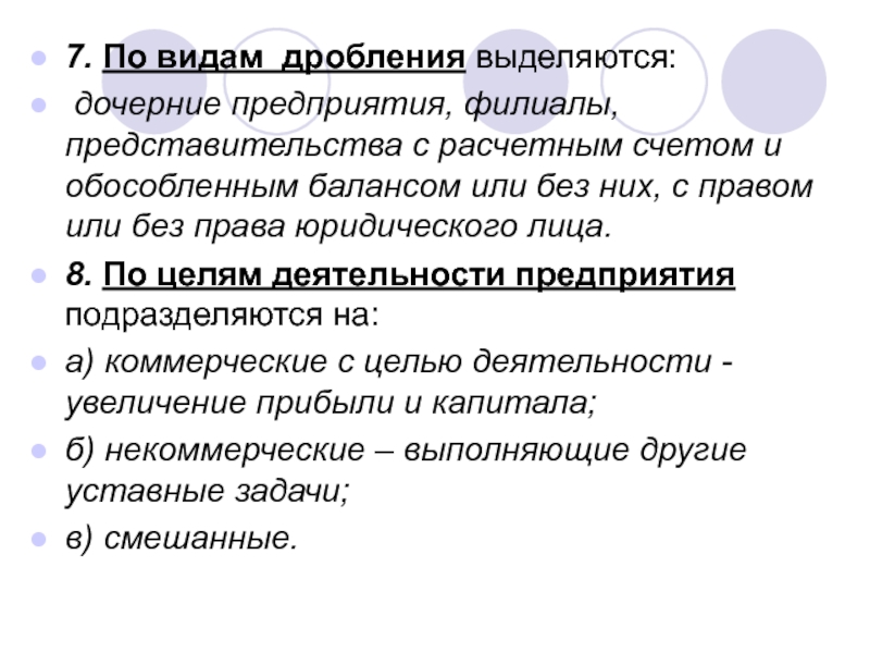8. По целям деятельности предприятия подразделяются на: