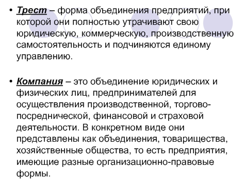 Слайд 24Трест – форма объединения предприятий, при которой они полностью утрачивают