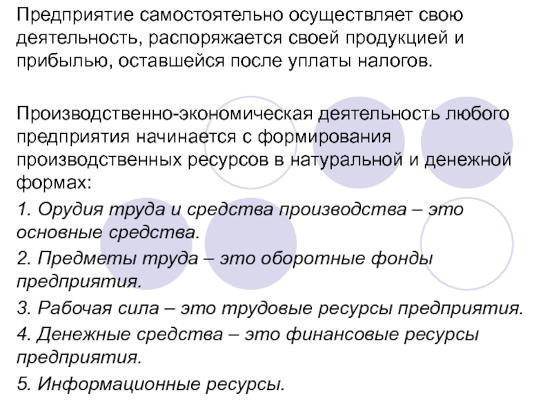 Слайд 8Предприятие самостоятельно осуществляет свою деятельность, распоряжается своей продукцией и прибылью,