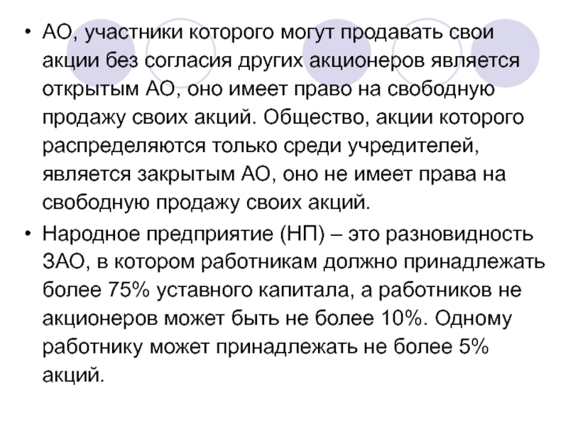 Слайд 16АО, участники которого могут продавать свои акции без согласия других