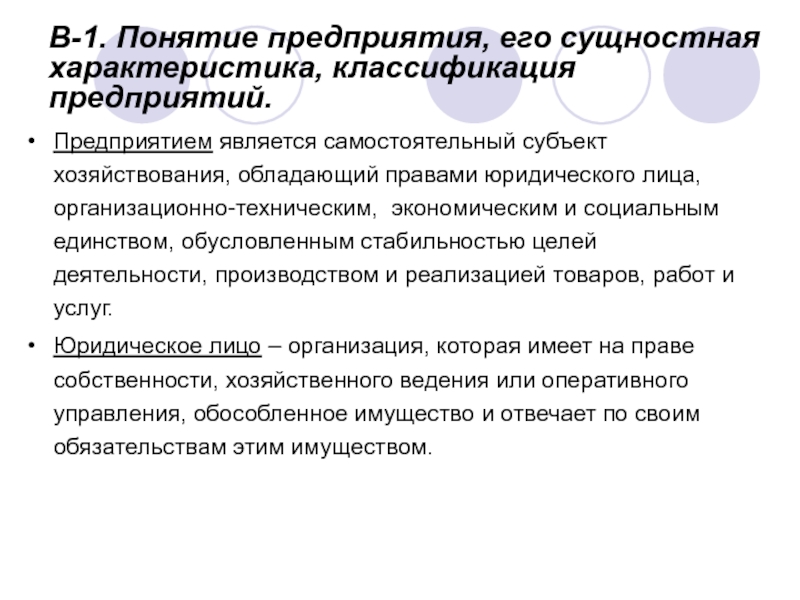 Слайд 2В-1. Понятие предприятия, его сущностная характеристика, классификация предприятий.