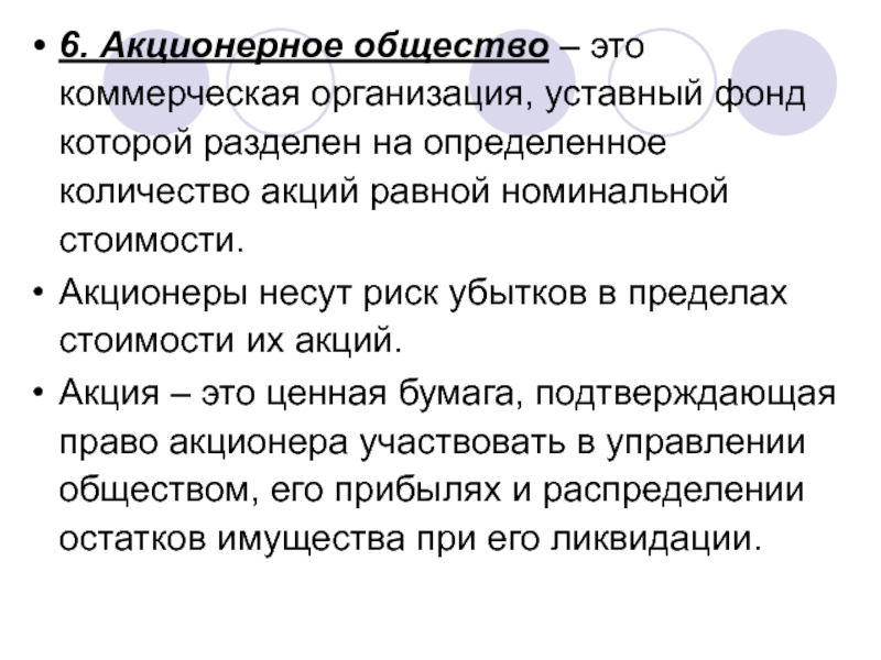Слайд 146. Акционерное общество – это коммерческая организация, уставный фонд которой