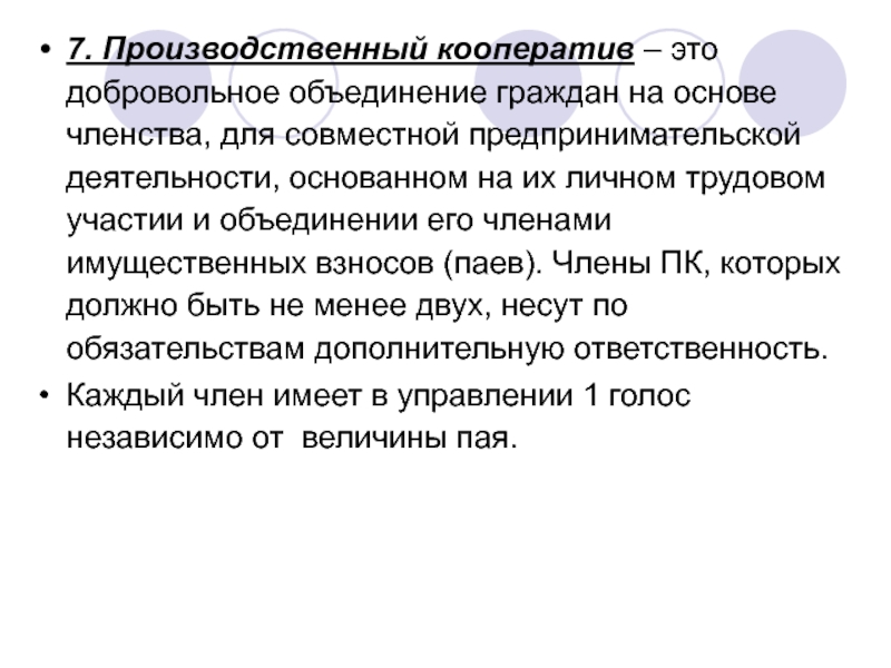 Слайд 177. Производственный кооператив – это добровольное объединение граждан на основе