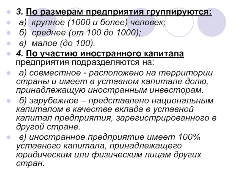 Слайд 4Классификация предприятий: