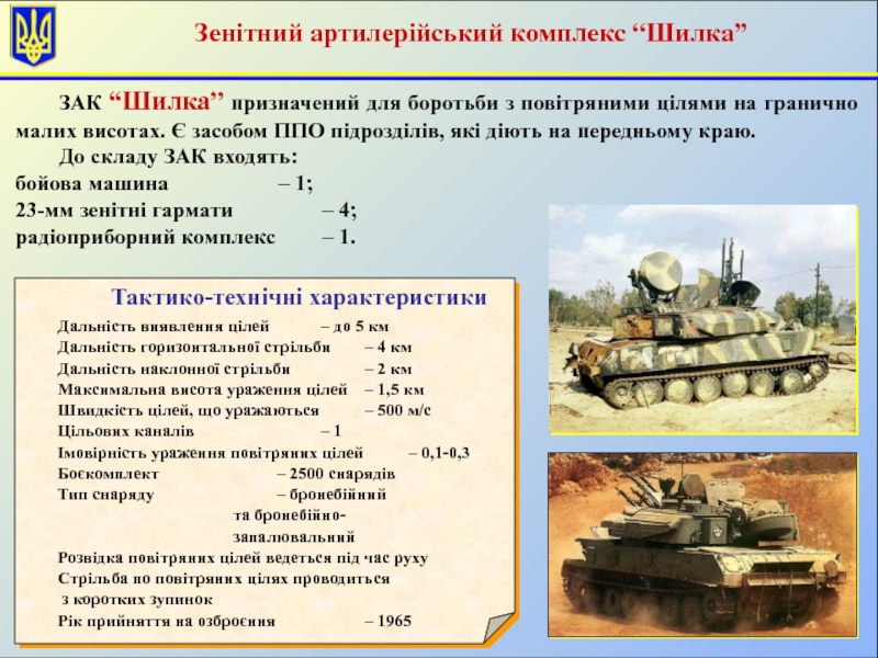 Слайд 23 ЗАК “Шилка” призначений для боротьби з повітряними цілями на гранично