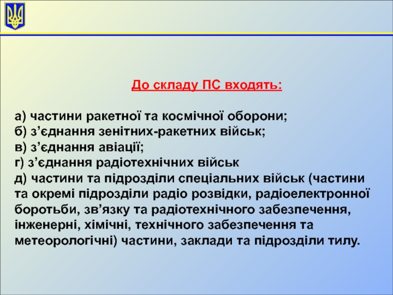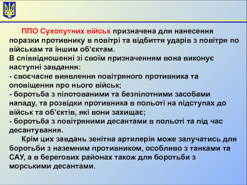 Слайд 14 ППО Сухопутних військ призначена для нанесення поразки противнику в повітрі
