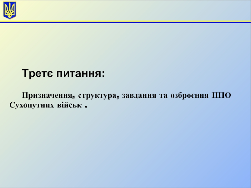 Третє питання: Призначення, структура, завдання та озброєння ППО Сухопутних військ. .