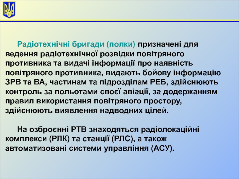 Радіотехнічні бригади (полки) призначені для ведення радіотехнічної розвідки повітряного противника