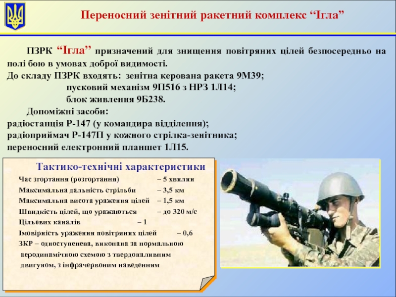 ПЗРК “Ігла” призначений для знищення повітряних цілей безпосередньо на полі бою в умовах доброї видимості.