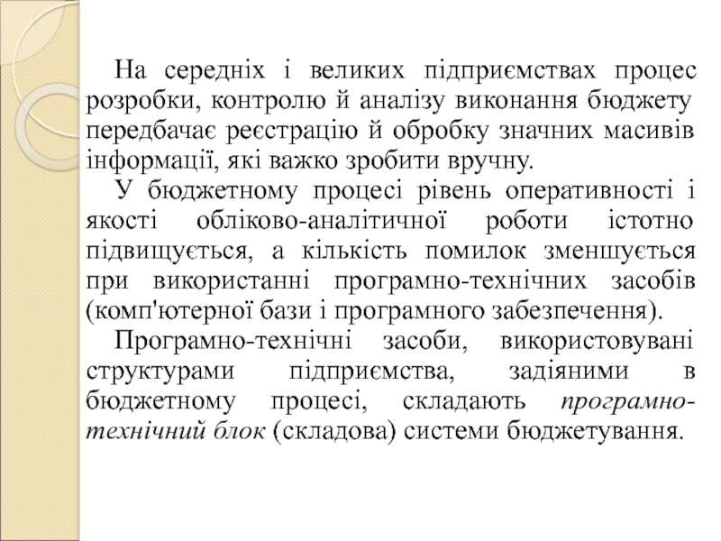 Програмно-технічні засоби, використовувані структурами підприємства, задіяними в бюджетному процесі, складають програмно-технічний блок (складова) системи бюджетування.