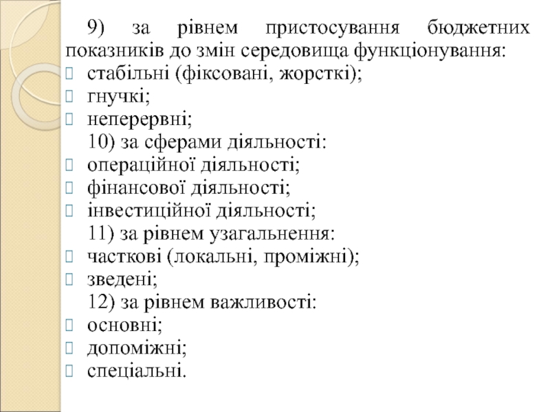 Слайд 259) за рівнем пристосування бюджетних показників до змін середовища функціонування: