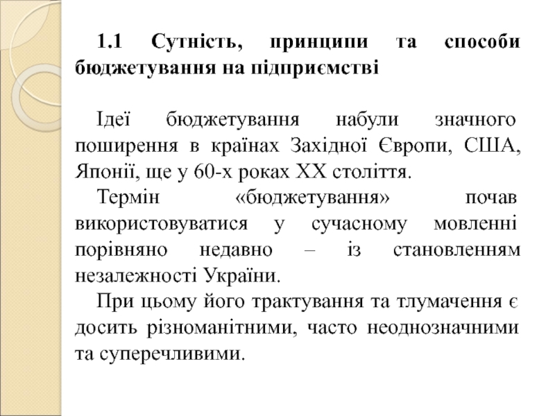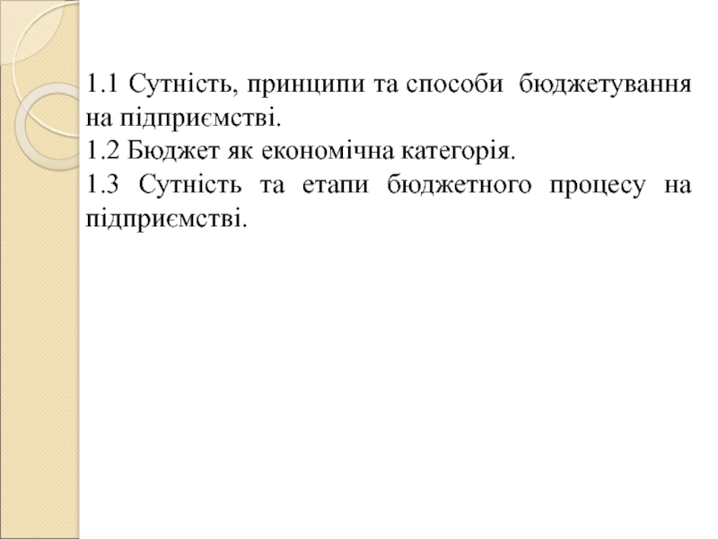 Слайд 31.1 Сутність, принципи та способи бюджетування на підприємстві