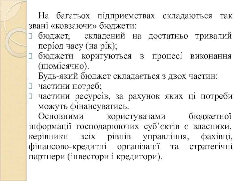 Слайд 20На багатьох підприємствах складаються так звані «ковзаючи» бюджети:
