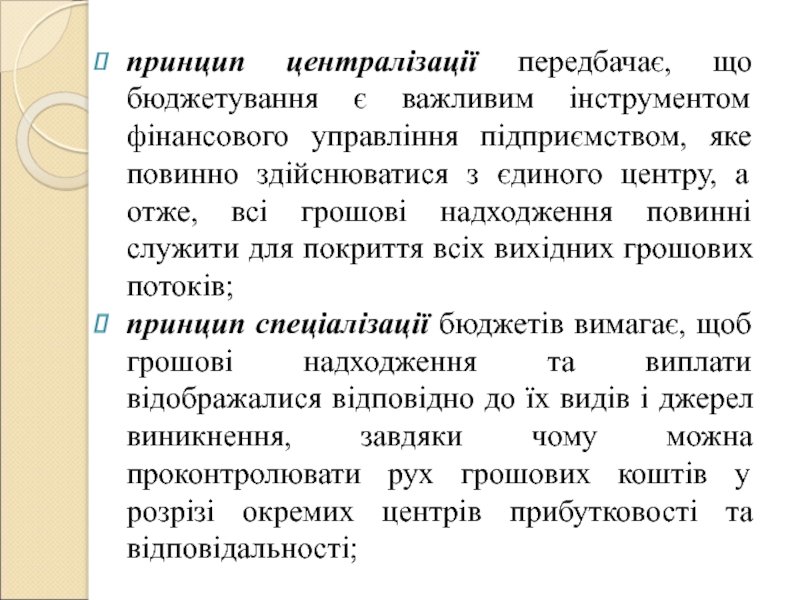 Слайд 9принцип централізації передбачає, що бюджетування є важливим інструментом фінансового управління