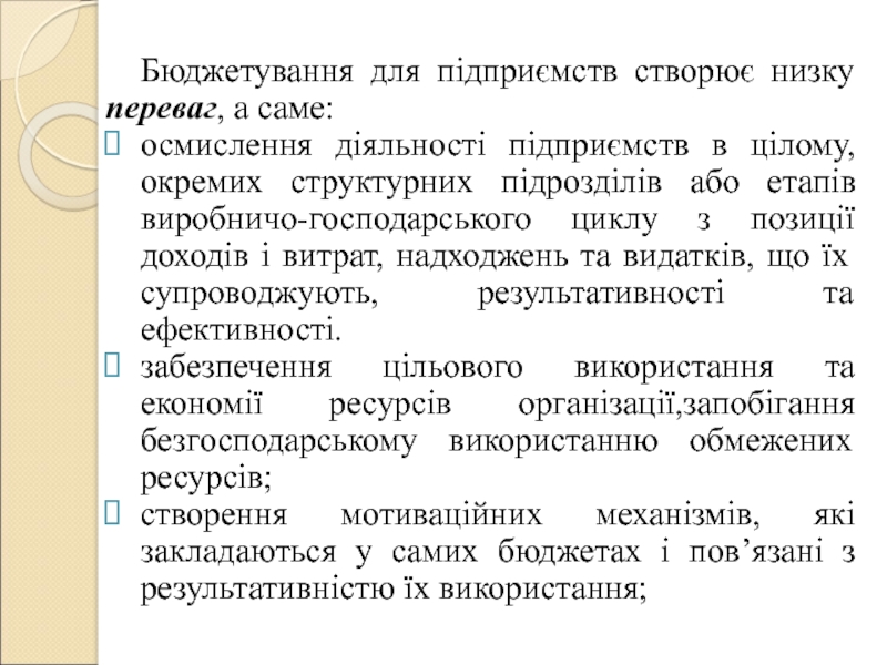 Слайд 15Бюджетування для підприємств створює низку переваг, а саме: