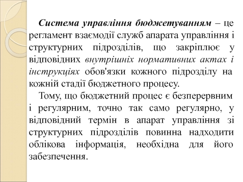 Слайд 38Система управління бюджетуванням – це регламент взаємодії служб апарата управління