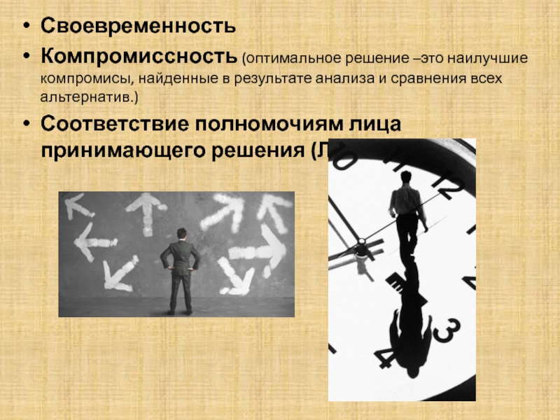 Компромиссность (оптимальное решение –это наилучшие компромисы, найденные в результате анализа
