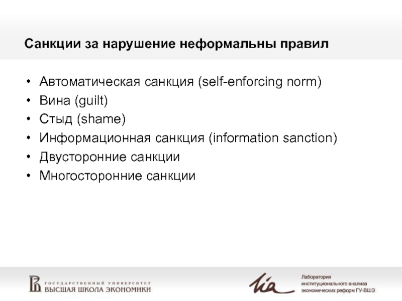 Несогласованность – формальные и неформальные правила находятся в конфликте. Пример: законодательное запрещение практики чаевых