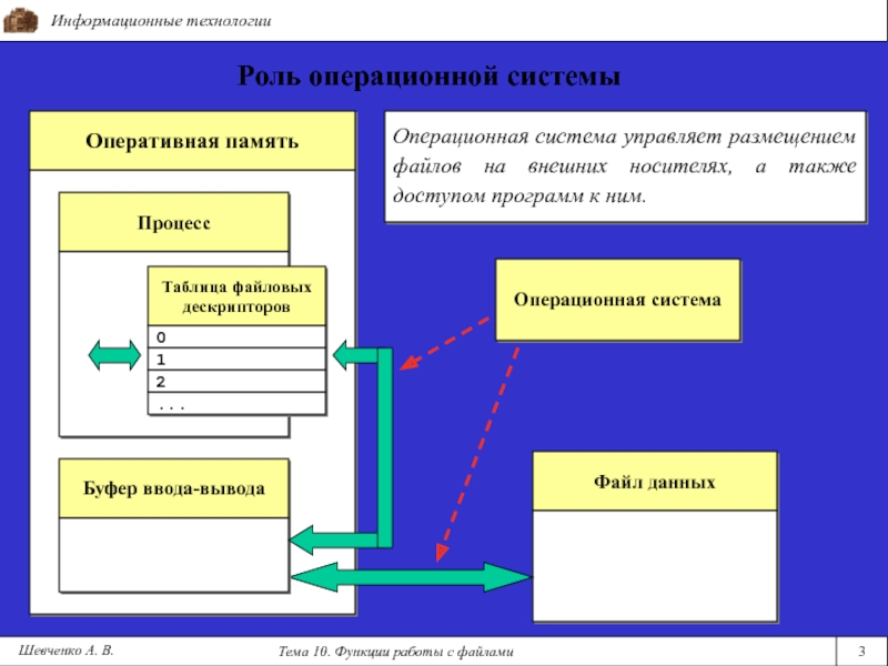 Перед выполнением операций чтения или записи файл должен быть открыт (связан с файловым дескриптором). После завершения ввода или вывода файл закрывается.