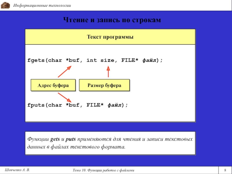 Функции gets и puts применяются для чтения и записи текстовых данных в файлах текстового формата.
