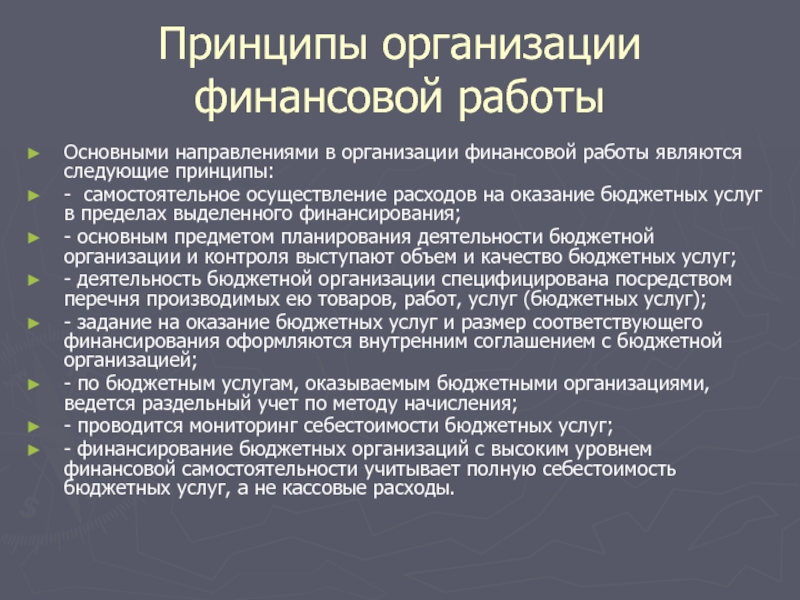 - основным предметом планирования деятельности бюджетной организации и контроля выступают объем и качество бюджетных услуг;