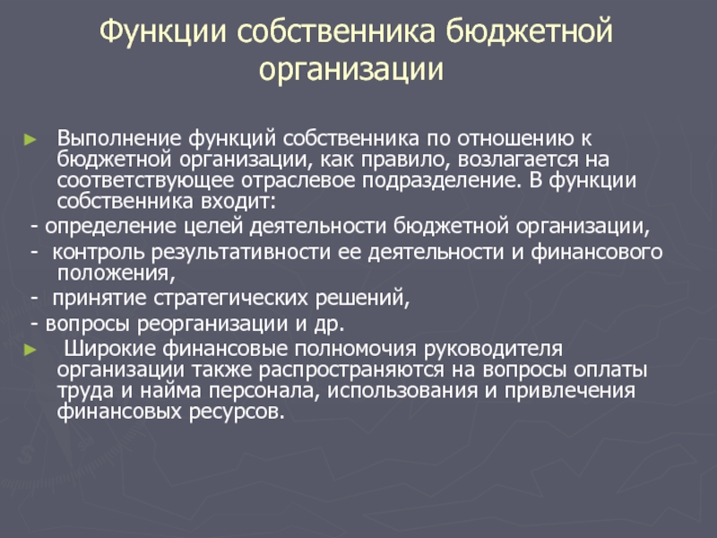 бюджетной организации, как правило, возлагается на соответствующее отраслевое подразделение. В