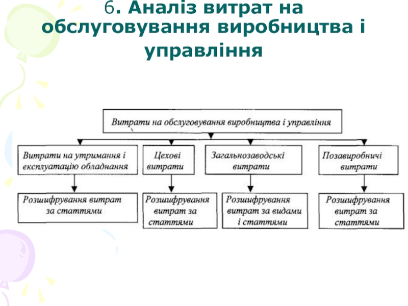 Слайд 516. Аналіз витрат на обслуговування виробництва і управління
