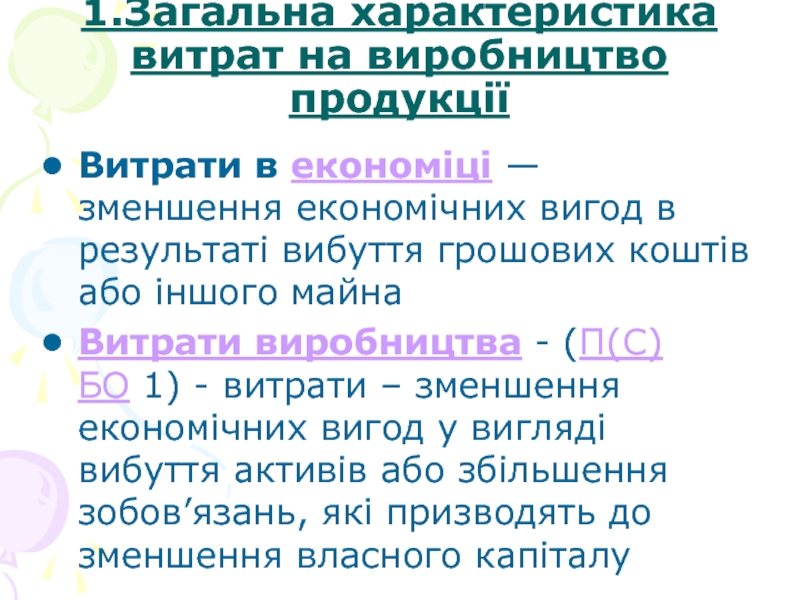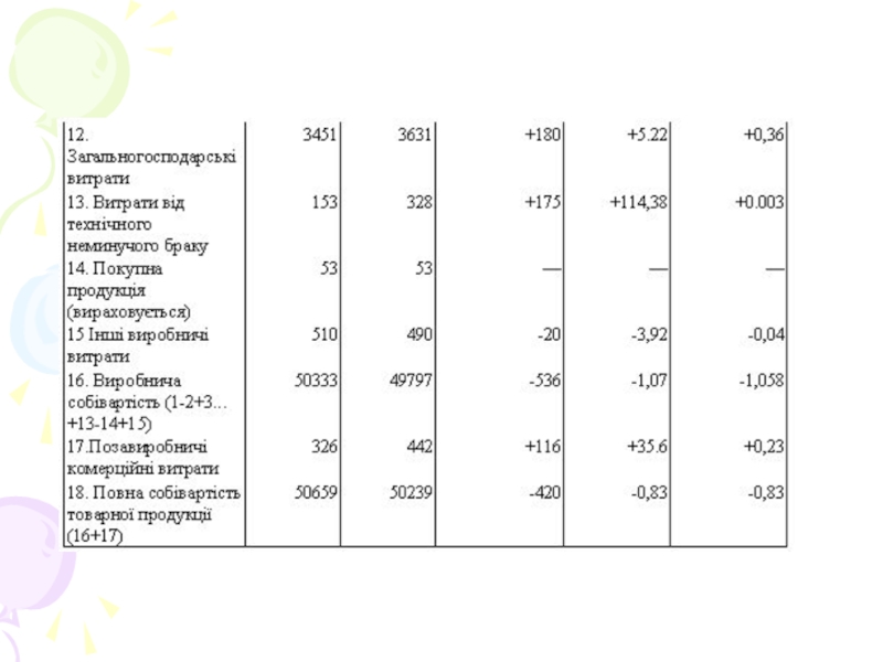 Слайд 21.Загальна характеристика витрат на виробництво продукції