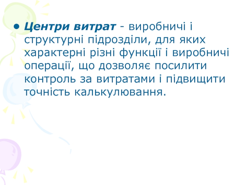 Слайд 55Центри витрат - виробничі і структурні підрозділи, для яких характерні різні функції